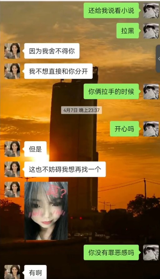 男主在外务工供女友上大学,女友胡文惠却出轨同校大四体育生孟熙 ,只因孟熙给她发了一则打飞机的视频,于是欣然前往酒店开房出轨!孟熙从此被人惯称 “飞机哥”。